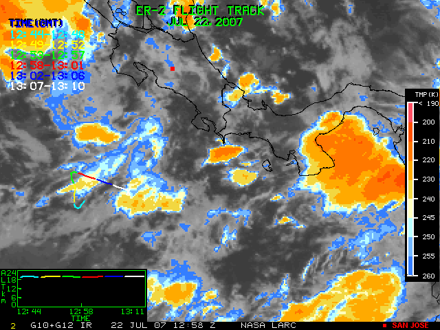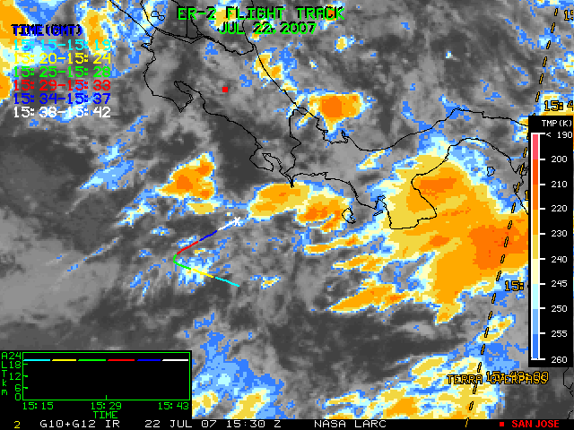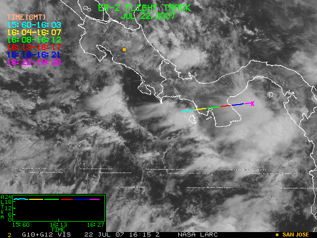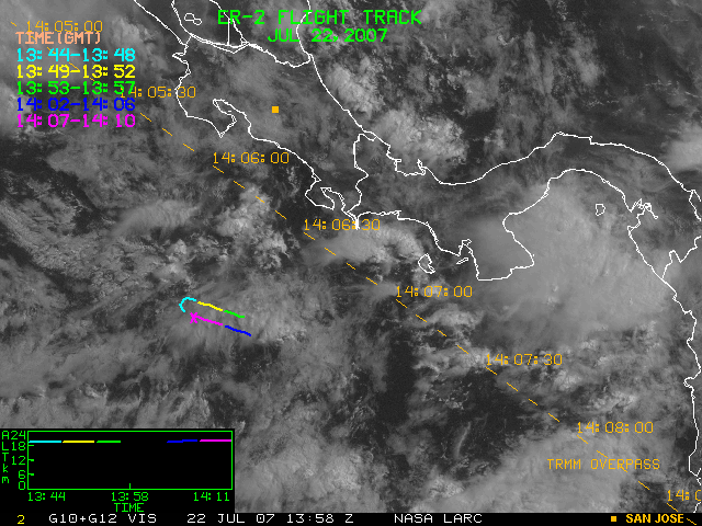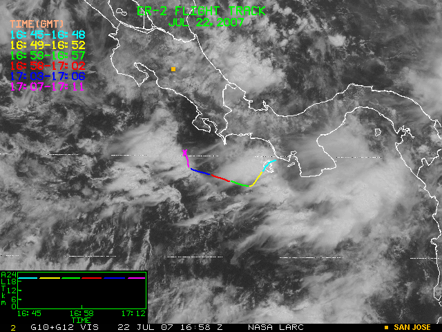 GOES (G10+G12) Visible image (22 July 2007 14:45 UTC) showing ER2 flight track