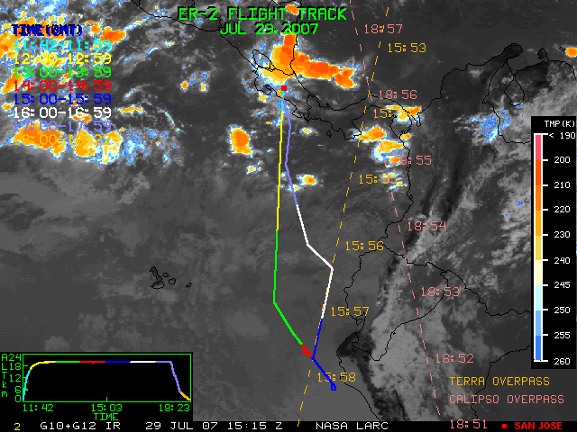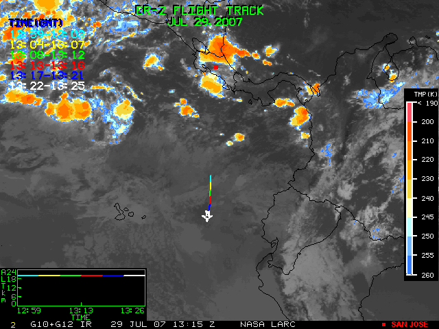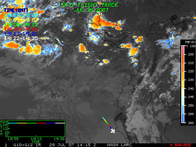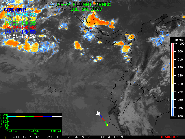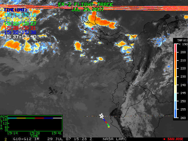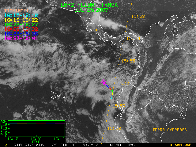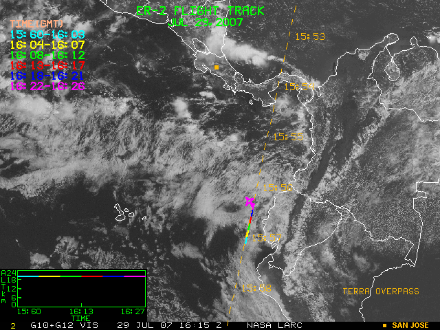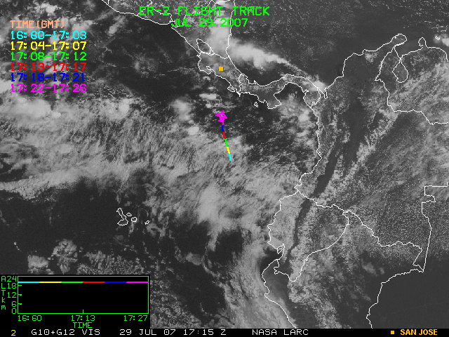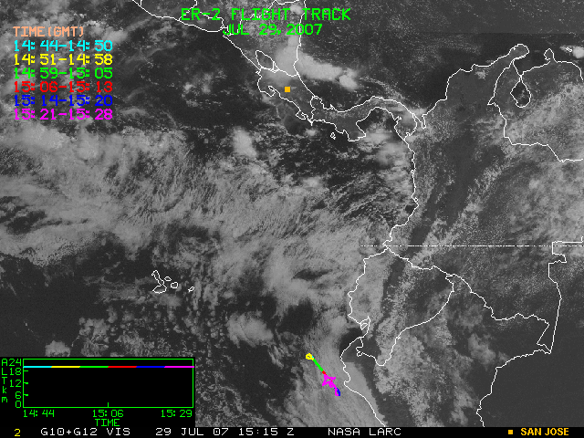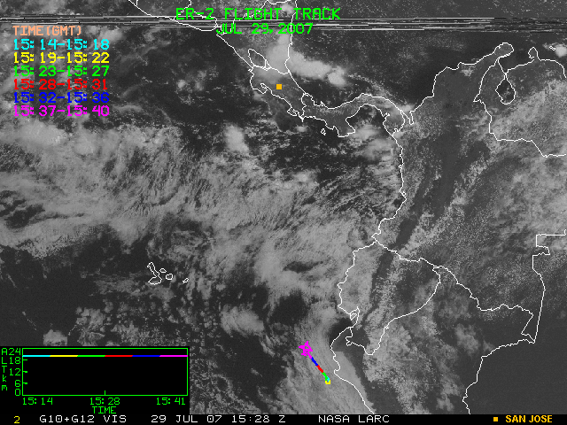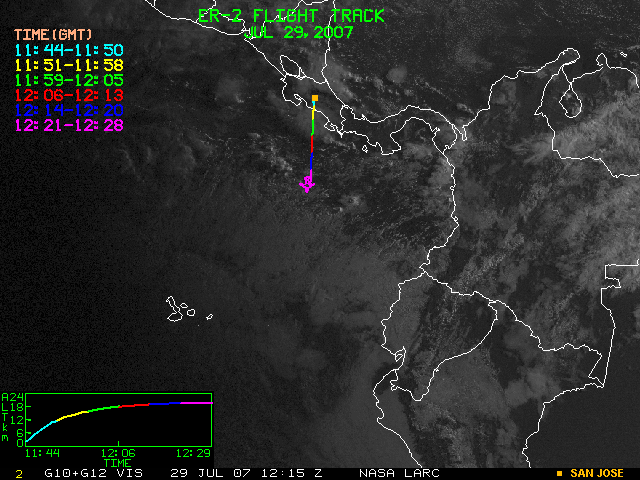 GOES (G10+G12) Visible image (29 July 2007 15:15 UTC) showing ER2 flight track