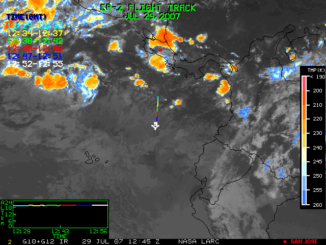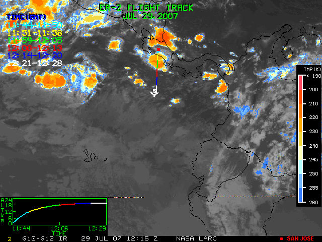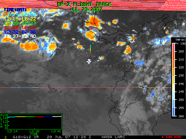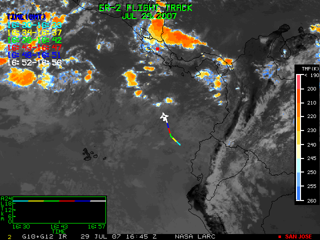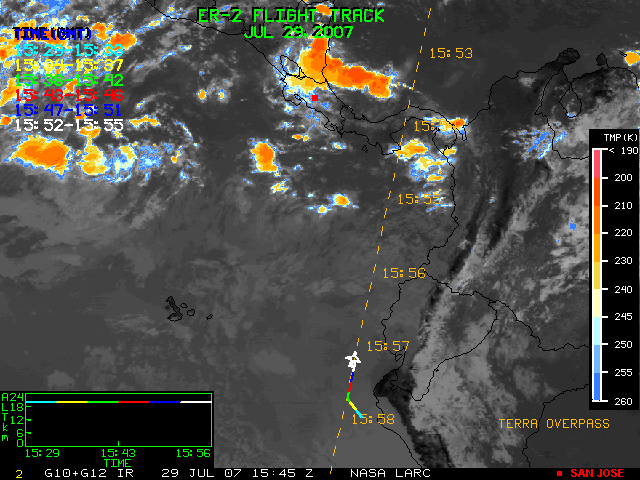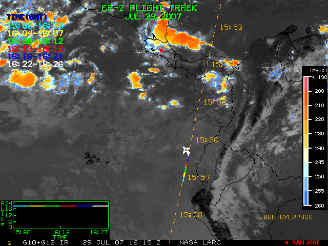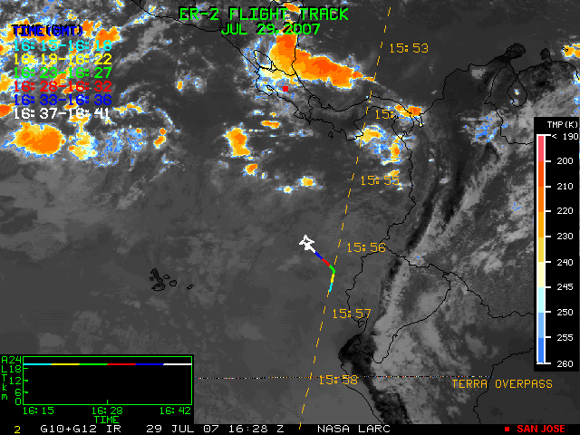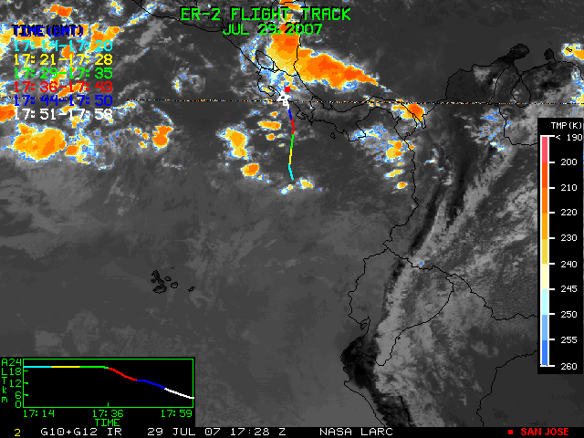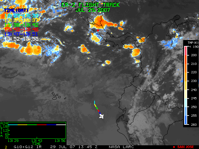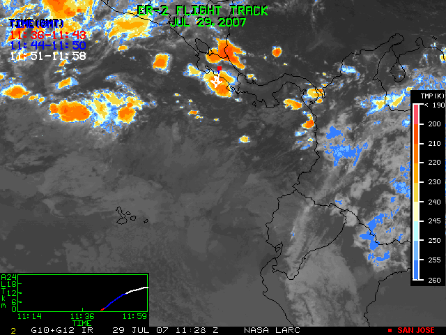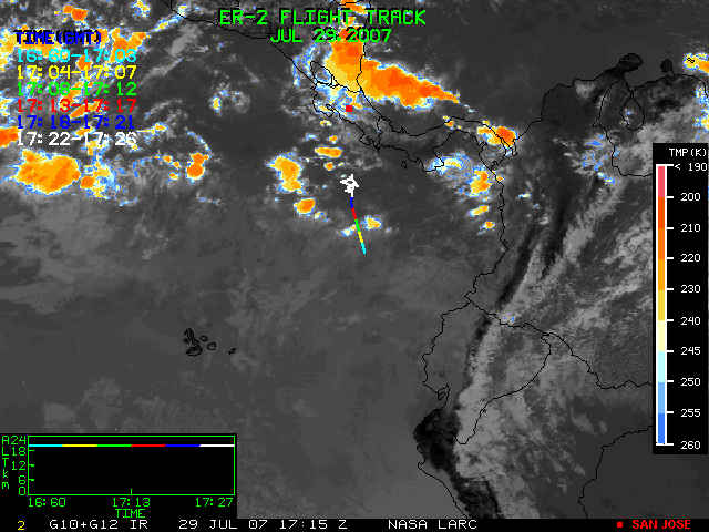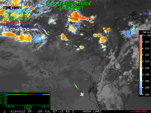 GOES (G10+G12) Visible image (29 July 2007 15:15 UTC) showing ER2 flight track